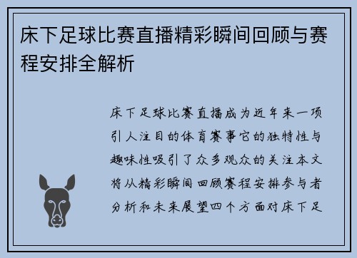 在达日县的足球比赛中,精彩的直播回放吸引了众多球迷的目光。本文将对比赛进行全程回顾,分享其中的精彩瞬间与令人难忘的片段。从赛前准备、比赛过程到赛后反响,将全面呈现这场盛事的每一个细节。我们不仅会探讨比赛中的关键时刻,还会分析选手们的表现与战术安排。此外,观众互动和媒体关注也将在此次回顾中占据重要位置...